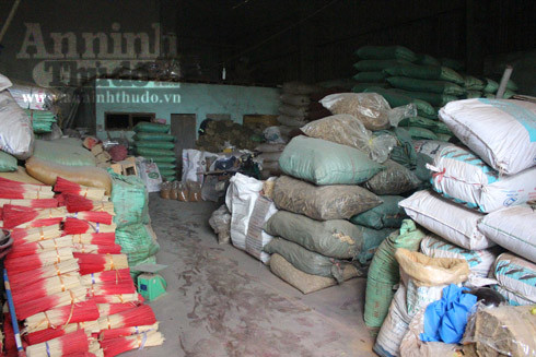 Xưởng sản xuất chứa nhiều bột hương, tăm tre cùng hương thành phẩm với nguy cơ bắt cháy nhanh và rộng