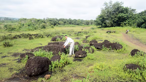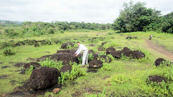 Phải len lỏi qua mấy chục cây số đường rừng, lội qua những con suối chảy xiết đầu mùa mưa, chúng tôi mới tìm đến được khu mộ đá cổ của S’tiêng nằm giữa bạt ngàn rừng núi biên giới Lộc Ninh. Người dẫn đường cho chúng tôi, anh Điểu Thoại, một thanh niên còn khá trẻ, vui tính vừa đi vừa kể: “Khu mộ cổ này nằm ở gần khu mỏ đá đang khai thác của người dân địa phương. Đó là một khu đất trống, rộng mênh mông nằm thoai thoải trên một triền đồi, được người dân quanh vùng gọi là khu đá Bãi Tiên”.