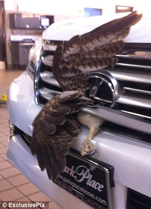 Một khách hàng đến từ Grapevine, Texas đã yêu cầu một thợ sửa xe giải thoát cho một chú chim ưng từ lưới tản nhiệt trong chiếc xe ô tô của mình. Người khách hàng cho biết cô đã lái với tốc độ khoảng 96 km/một giờ trước khi chú chim đâm vào xe của cô.