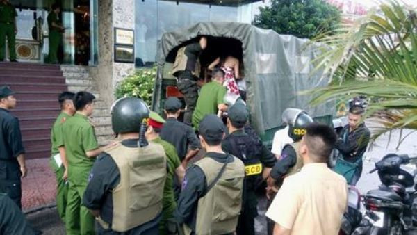 Lực lượng chức năng khống chế các "dân bay" ở karaoke Ruby - tiền thân quán Hồng Ngọc - hồi tháng 6-2016