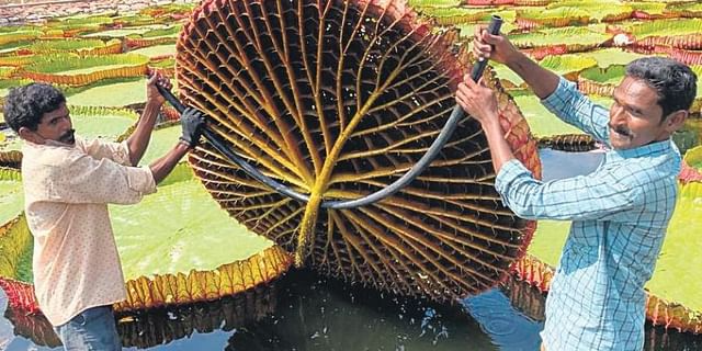 Kỳ lạ loài sen vua có lá to như chiếc thuyền thúng, chở được người