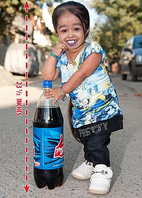 Jyoti Amge đã đạt được tham vọng lớn của mình, khi trở thành người phụ nữ nhỏ nhất thế giới khi kỷ lục cũ thuộc về cô gái người Mỹ Bridgette Jordan cao 68 cm. Jyoti Amge với chiều cao 60 cm, nặng gần 5 kg, vừa bước sang tuổi 18. Jyoti Amge cho biết: “Mong muốn được trở thành người phụ nữ nhỏ nhất thế giới là ước mơ của tôi trong nhiều năm. Và giờ điều đó đã trở thành sự thật, tôi không phải chờ đợi quá lâu nữa”.