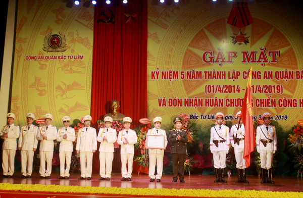 Thừa ủy quyền của Chủ tịch nước, Trung tướng Nguyễn Văn Sơn, Thứ trưởng Bộ Công an trao Huân chương Chiến công hạng Nhì tặng CAQ Bắc Từ Liêm