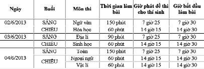 Lịch thi tốt nghiệp THPT 2013