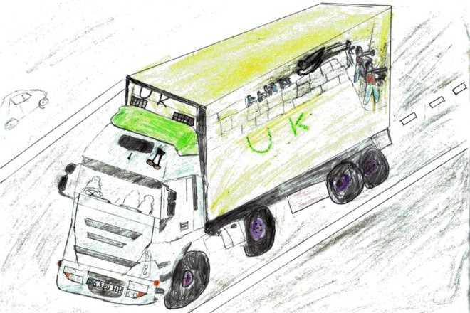 Bức hình Ahmad vẽ lại về cảnh tượng người bị nhốt kín trong thùng xe