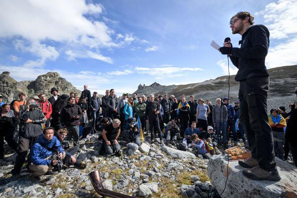 Hơn 200 người mặc bộ đồ đen tham dự “lễ tiễn biệt” dòng sông băng Pizol