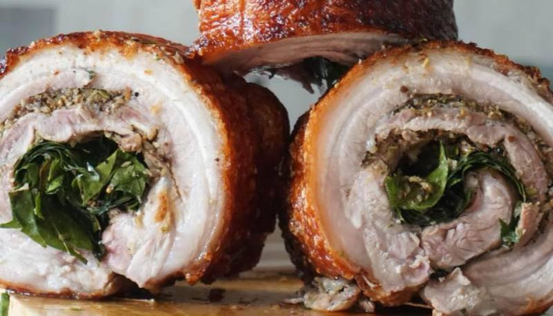 Một món ngon nữa mà ít có địa phương nào làm được ngon như Lạng Sơn đó là lợn quay. Lợn quay cho màu sắc vô cùng hấp dẫn, da giòn vàng, căng bóng. Lớp mỡ dưới bì được nướng chậm nên mềm, béo và săn lại, ăn vừa đủ, thấm vị, không ngán. Người Lạng Sơn đương nhiên ăn lợn quay cùng lá mắc mật để chống ngán.