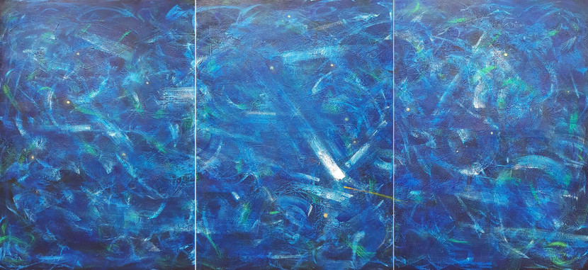 Với những gam xanh, hay nâu, hay vàng, anh đều chủ động đưa người xem vào cảm giá không gian rất lạ lẫm mê hoặc hoặc no sắc, không phụ thuộc vào cảm giác ban đầu (dù biết màu là thể hiện trạng thái tình cảm của họa sĩ).