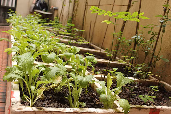 Nhiều gia đình tận dụng khoảng trống quanh chậu cây cảnh để trồng rau sống