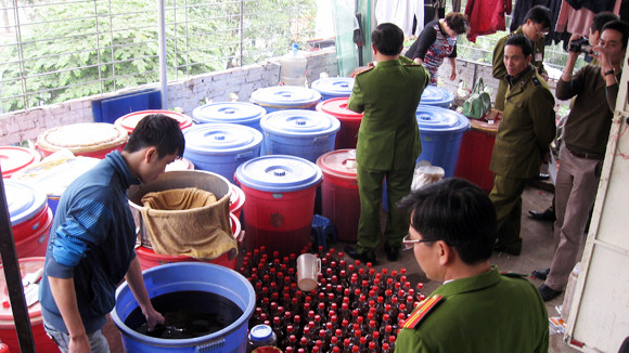Như Báo ANTĐ đưa tin, trưa 25-12, Đội 2 Phòng Cảnh sát phòng chống tội phạm (PCTP) về môi trường - CATP Hà Nội, phối hợp với Đội QLTT số 6, 7; Đội CSĐT tội phạm về TTQLKT&CV CAH Từ Liêm... kiểm tra Cơ sở kinh doanh đá quý, đá phong thủy, đá thiên nhiên “Thúy Gấu” (ở 119 đường Mễ Trì, huyện Từ Liêm), phát hiện cửa hàng bán một lượng lớn rượu, ước chừng khoảng 3.000 lít. Tiến hành kiểm tra chất lượng hơn 10 mẫu rượu, cơ quan công an phát hiện nhiều bình, thùng, bể rượu có chất ma túy (ngâm thân, rễ, lá, quả, vỏ cây thuốc phiện).