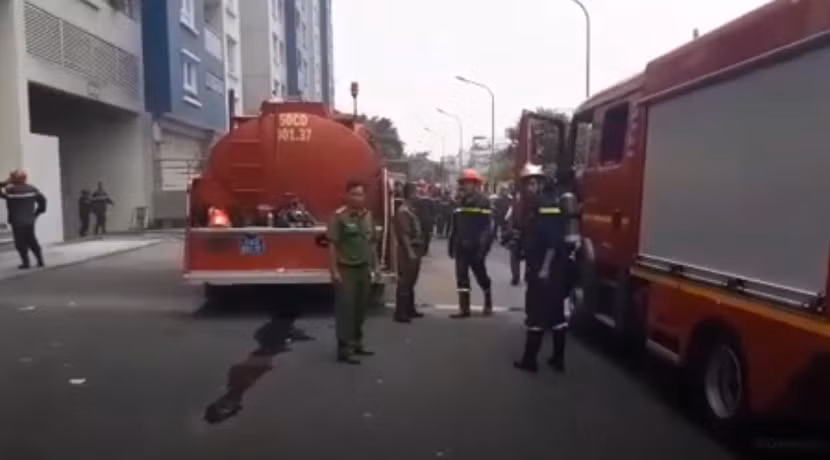 Sau đó loa thông báo có cháy khu C và đề nghị mọi người di tản xuống. Lực lượng Công an, bảo vệ chạy lên phía khu C hỗ trợ đưa người dân xuống. Sau đó, xe cứu hỏa đang vào khu C tòa nhà tiếp cận hiện trường.