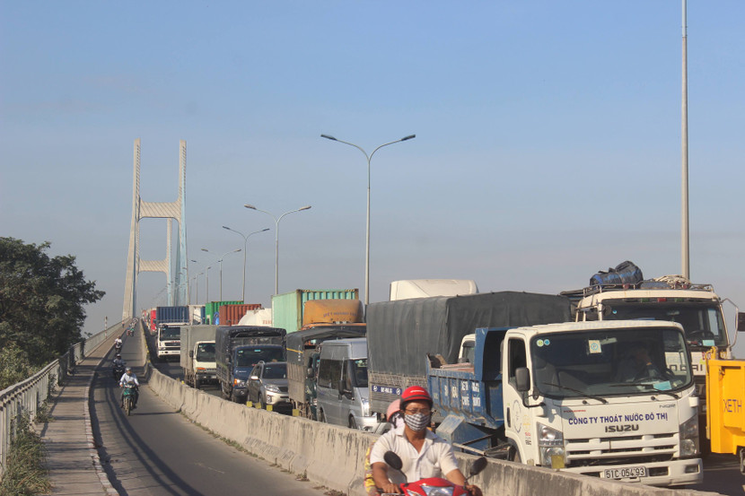 Cụ thể theo quy định, tốc độ lưu thông của các phương tiện xe tải, xe container khi đi qua cầu Phú Mỹ sẽ giảm từ 60 km/h xuống còn 40 km/h.