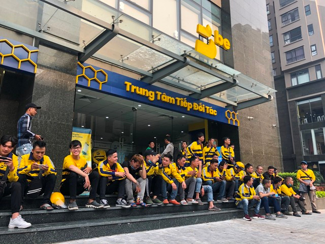 Tài xế BEBike tập trung về Văn phòng đại diện của BE tại Hà Nội để phản đối một số chính sách mà Công ty đang áp dụng