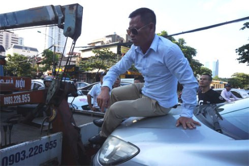 Không những vậy, khi lực lượng CSGT yêu cầu thử nồng độ cồn, lái xe này tìm đủ mọi cách né tránh. Khi các lực lượng chức năng gọi xe cẩu đến để đưa chiếc xe vi phạm về bãi xe, lái xe vẫn cố tình chống đối bằng cách ngồi lên nắp ca pô.