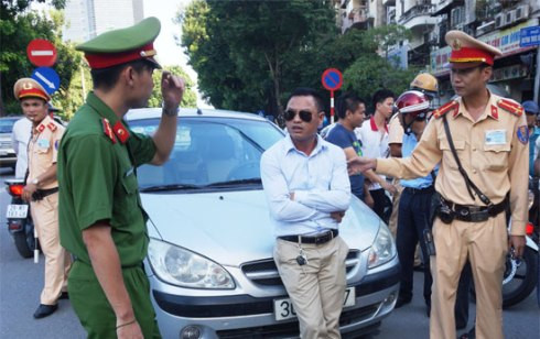 Lái xe ô tô vi phạm Luật Giao thông bị chặn dừng phương tiện