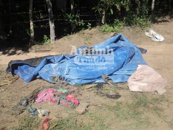 Hiện trường vụ sét đánh, áo quần, giày dép, dụng cụ lao động tả tơi