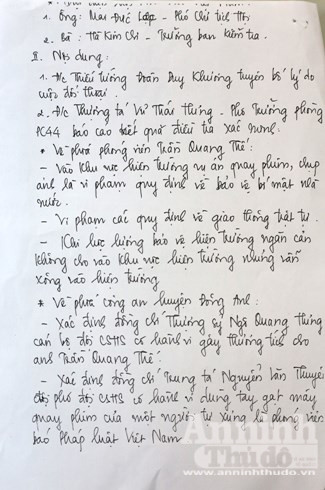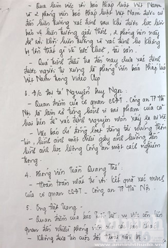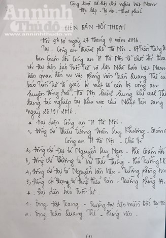 Được sự đồng ý của CATP, Báo ANTĐ chuyển tải đến bạn đọc Biên bản đối thoại: