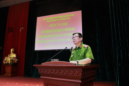 Sau lời phát biểu khai mạc của Thiếu tướng Đoàn Duy Khương, Ủy viên Ban thường vụ Thành ủy, Bí thư Đảng ủy - Giám đốc CATP Hà Nội, Thiếu tướng Đinh Văn Toản, Phó Giám đốc CATP thay mặt CATP, đơn vị Thường trực Ban chỉ đạo 197 TP trình bày báo cáo tổng kết 6 tháng đầu năm và sơ kết 3 tháng thực hiện Kế hoạch 01 (ngày 3-3-2017).