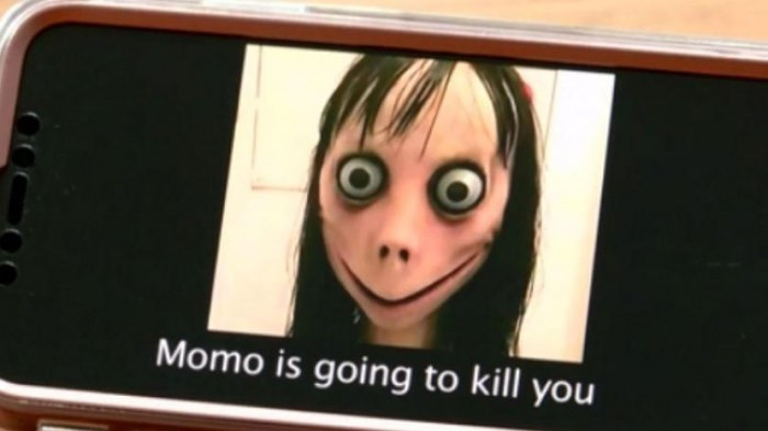 Thực tế, thông tin được lan truyền gần đây tập trung hướng vào nhân vật Momo với ngoại hình kỳ dị, có thể gây hoảng sợ cho trẻ em. Nhân vật Momo được chèn vào một đoạn bất ngờ trong các video được đăng trên YouTube, kèm theo những lời lẽ mang tính chất hù dọa nhưng rất tiêu cực, chẳng hạn: bạn sẽ chết. Trẻ em thấy hình ảnh này có thể khóc, bỏ ăn nhưng cảnh sát Anh thông báo chưa có bất kỳ trường hợp trẻ em nào tự làm hại mình do nhân vật Momo.