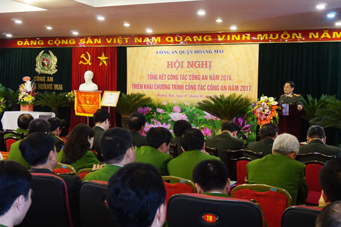 Phát biểu chỉ đạo hội nghị, Thiếu tướng Đoàn Duy Khương, Giám đốc CATP Hà Nội biểu dương, ghi nhận những nỗ lực, kết quả CAQ Hoàng Mai đã đạt được trong năm 2016. Đồng chí Giám đốc cảm ơn sự quan tâm, lãnh đạo, chỉ đạo của Quận ủy, HĐND, UBND quận và các ngành chức năng đã phối hợp, giúp đỡ để lực lượng CAQ Hoàng Mai nói riêng và Công an Hà Nội nói chung hoàn thành xuất sắc các nhiệm vụ được giao.