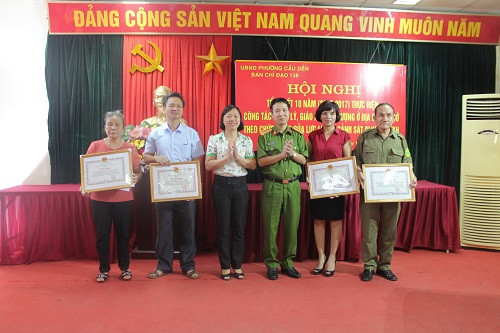 Ban tổ chức trao Giấy khen của Chủ tịch UBND phường Cầu Dền cho 5 cá nhân có nhiều đóng góp cho phong trào giáo dục, giúp đỡ người lầm lỗi