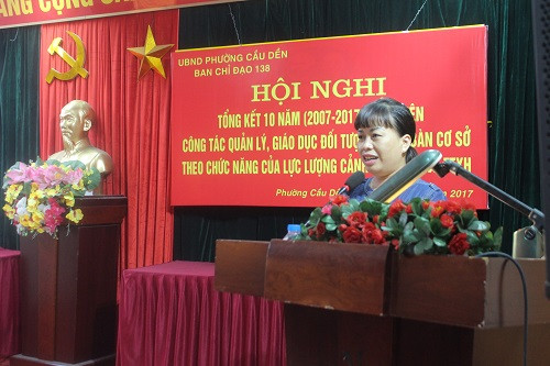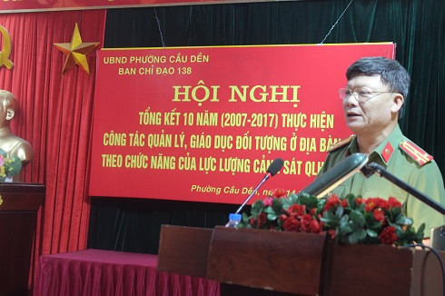 Tại hội nghị, Thượng tá Lã Văn Thắng ghi nhận và biểu dương những thành tích trong 10 năm qua của chính quyền, nhân dân phường Cầu Dền đã đạt được trong công tác quản lý, giáo dục đối tượng ở địa bàn cơ sở theo chức năng của lực lượng Cảnh sát Quản lý hành chính về trật tự xã hội.