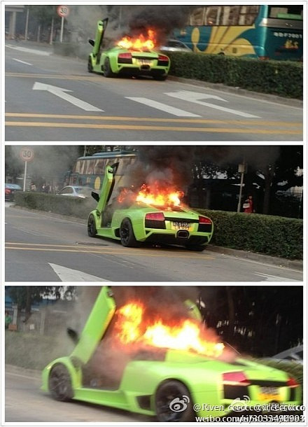 Chiếc siêu xe mang màu xanh nổi bật đã đột ngột bốc cháy giữa đường sau khi chủ nhân của chiếc xe tham gia vào một cuộc đua xe trái phép ngay trong thành phố. Đám lửa quá lớn khiến người dân ở cách đó vài dặm cũng có thể nhìn thấy khói ngùn ngụt, chiếc xe trị giá hơn 350.000 đô-la Mỹ bỗng chốc bị thiêu rụi. Đội cứu hoả có mặt tại hiện trường nhưng cũng đã quá muộn, không thể “cứu” được chiếc siêu xe.