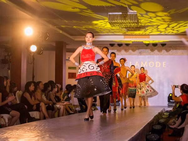 Những show đầu tiên thậm chí cũng rất khan hiếm về nguyên liệu, toàn sử dụng giấy mà lại là “giấy mếch”, một loại giấy gói hoa để thay vải. Một phần vì giấy là vật liệu dễ sáng tạo, một phần cũng không có kinh phí. Sau một thời gian, các nhà thiết kế trẻ mới bắt đầu sử dụng vải, kim loại… để sáng tạo.
