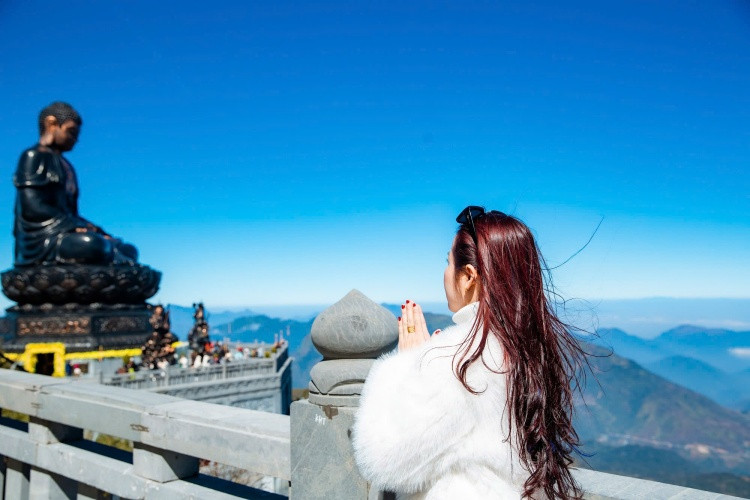 Nhiều khách quốc tế có mặt ở Sa Pa dịp Tết may mắn được du xuân giữa muôn hoa, chiêm ngưỡng Fansipan hùng vĩ, cảm nhận phong vị Tây Bắc. Những du khách đến Sa Pa đúng ngày mùng 3 Tết đã được hòa mình vào không khí trang nghiêm, linh thiêng của Hội xuân mở cổng trời.