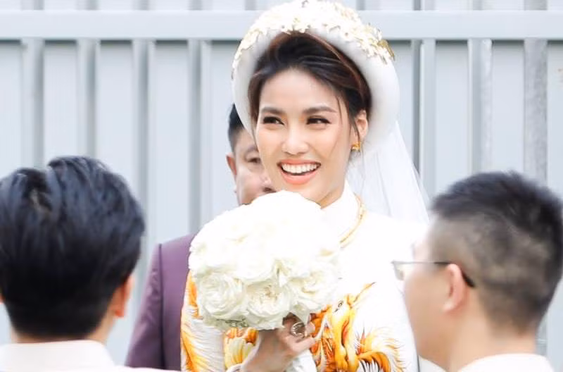 Xuất hiện trong buổi lễ quan trọng có ý nghĩa mở ra chặng đường hôn nhân đầy mới mẻ sắp tới, Lan Khuê mỉm cười rạng rỡ và đầy hạnh phúc.