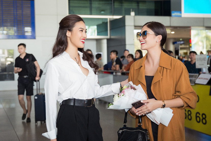 Pia Wurtzbach và Lan Khuê cũng đã có cuộc trò chuyện ngắn khá vui vẻ và cởi mở ngay tại sân bay.