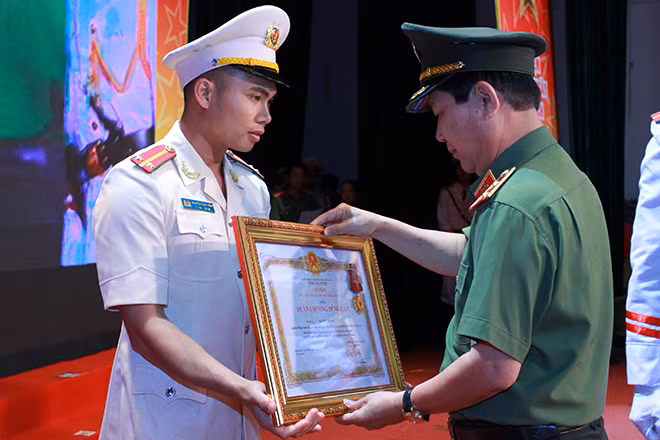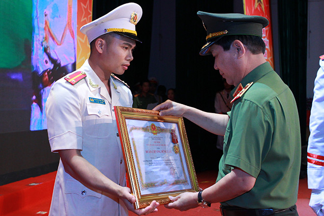 Thừa ủy quyền của Chủ tịch nước, Trung tướng Nguyễn Văn Sơn trao tặng Huân chương Dũng cảm cho Trung úy Nguyễn Văn Tiến, Cán bộ Phòng CSGT CATP Hà Nội