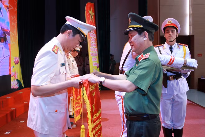 Trung tướng Nguyễn Văn Sơn trao Cờ thi đua đơn vị xuất sắc trong thực hiện phong trào “CAND học tập, thực hiện sáu điều Bác Hồ dạy” giai đoạn 2013-2018 cho các tập thể, cá nhân của Công an Hà Nội