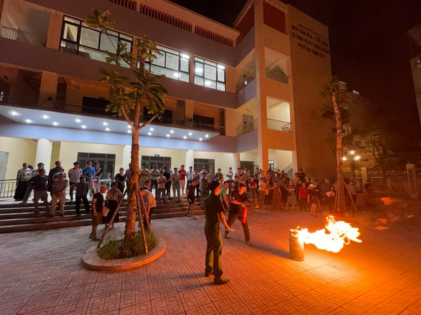 Thông điệp “5 phút giờ vàng trong chữa cháy và thoát nạn”, chỉ là một nội dung trong buổi sinh hoạt cộng đồng ở hội trường Cụm công trình Văn Hóa, Thể thao và Nhà sinh hoạt cộng đồng phường Vĩnh Tuy, tối 5-10.