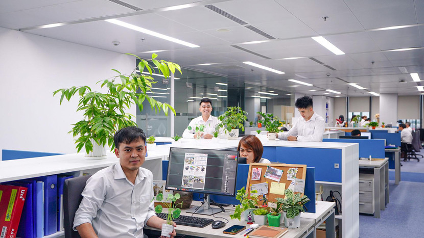 | "Xanh, Sạch, Tiết kiệm, Sáng tạo" - Đó là tinh thần mà nhóm 03 phòng: Hành chính, Kế hoạch và Pháp lý dự án 2 đã hướng tới trong việc sắp xếp và bố trí mảng xanh tại khu làm việc. Bằng sự đoàn kết và nỗ lực, liên minh 3 phòng đã thúc đẩy môi trường xanh hơn, giúp giảm thiểu tác động đến môi trường. |