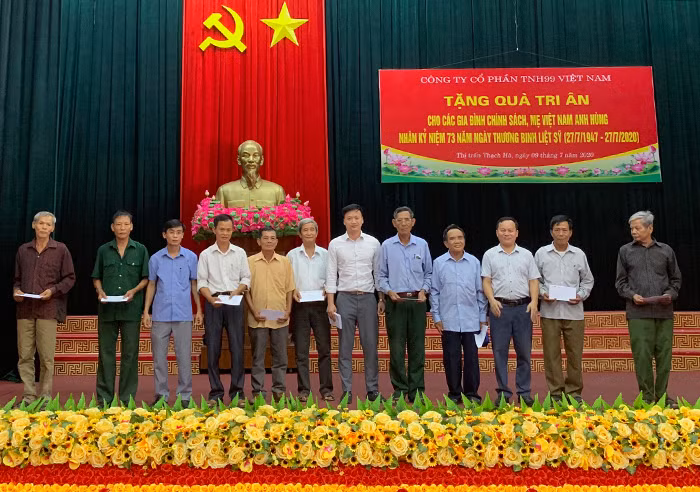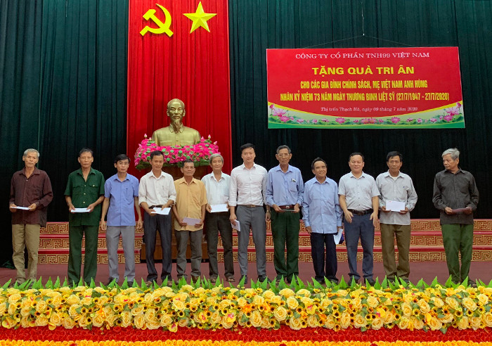 Tại tỉnh Hà Tĩnh, Ông Phạm Hữu Hải - Phó Tổng Giám đốc TNH99 Việt Nam đã trao 582 suất quà, mỗi suất quà trị giá 500.000 đồng (Tổng giá trị 291.000.000 đồng) cho các gia đình chính sách tại thị trấn Thạch Hà; 200 suất quà, mỗi suất quà trị giá 500.000 đồng (Tổng giá trị 100.000.000 đồng) cho các gia đình chính sách tại thị trấn Cẩm Xuyên; 200 suất quà, mỗi suất quà trị giá 500.000 đồng (Tổng giá trị 100.000.000 đồng) cho các gia đình chính sách tại xã Thạch Hội.