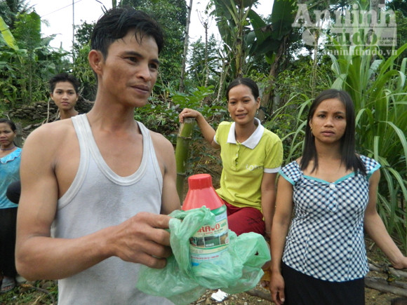 Hiện nay dọc các rẫy mì ở dọc khu vực đồi núi thuộc thôn Làng Riềng đều phun thuốc diệt cỏ và xảy ra tình trạng bị nhiễm độc. Trừ trẻ em, người già yếu ở nhà, đa số người lớn đi làm đều bị nhiễm độc.