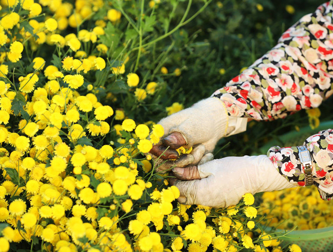 ANTD.VN - Những ngày cận Tết, mùa cúc chi vàng lại nở rộ trên những cánh đồng hoa ở làng Nghĩa Trai (Văn Lâm, Hưng Yên). Ngoài vẻ đẹp thuần khiết, bình dị thì loài hoa cúc chi này còn là loại thảo dược tự nhiên dùng để chăm sóc cho sức khỏe.