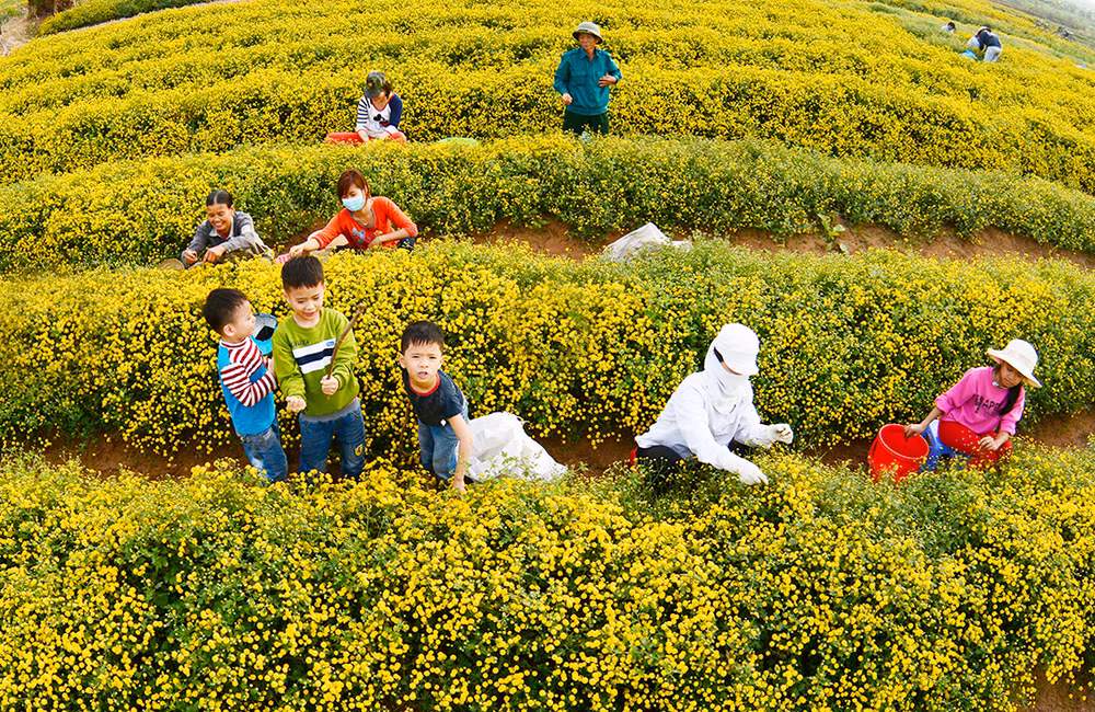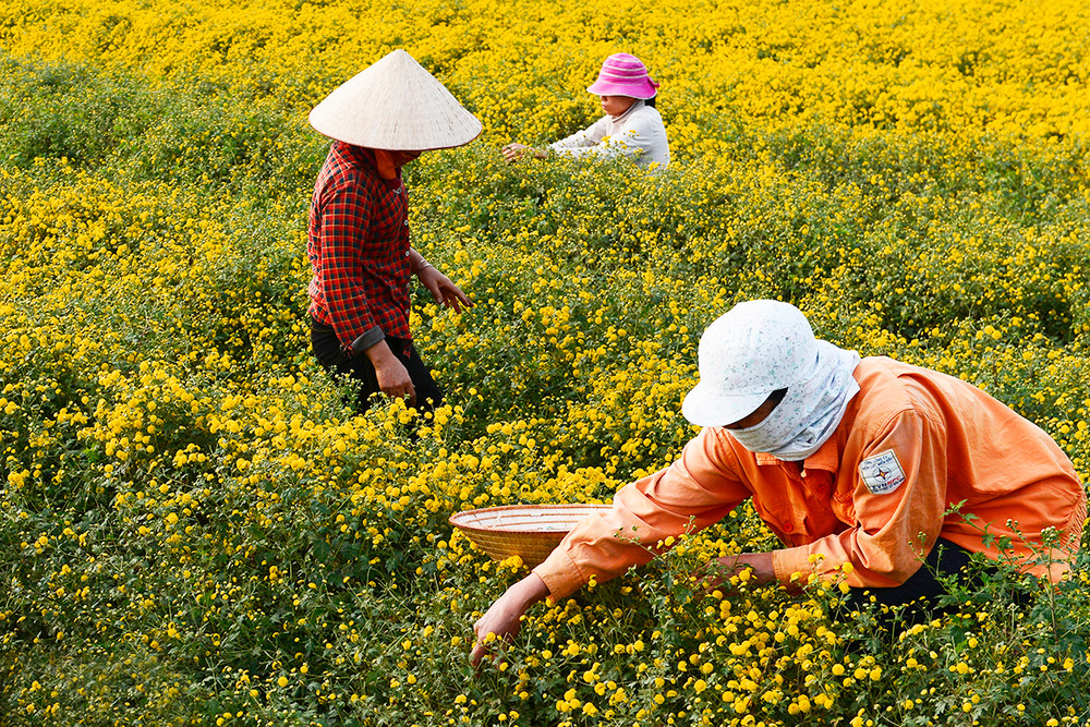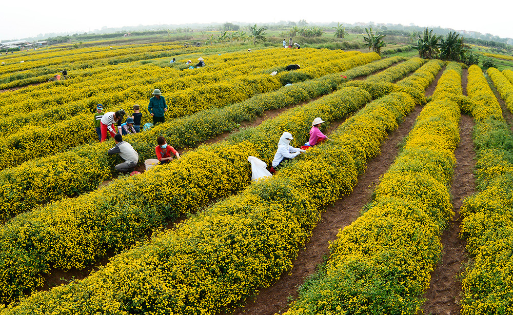 ANTD.VN - Về thôn Nghĩa Trai (xã Tân Quang, huyện Văn Lâm, tỉnh Hưng Yên) vào những ngày này, đâu đâu cũng ngát hương thơm và được nhuộm vàng bởi những cánh đồng hoa cúc khoe sắc trong nắng sớm mùa đông.