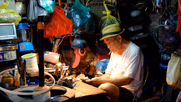 Cụ bà ở tháp nước tròn Hàng Đậu với bức di ảnh người chồng quá cố trên tay