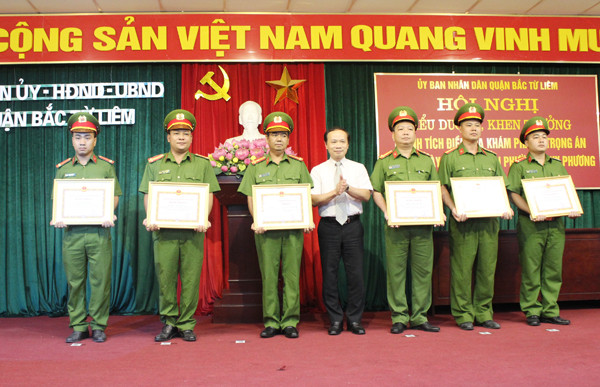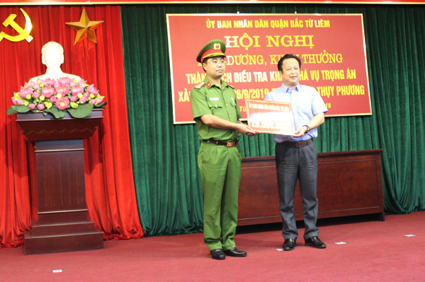 Nhân dịp này, UBND quận Bắc Từ Liêm đã thưởng nóng cho CBCS tham gia phá án số tiền 20 triệu đồng