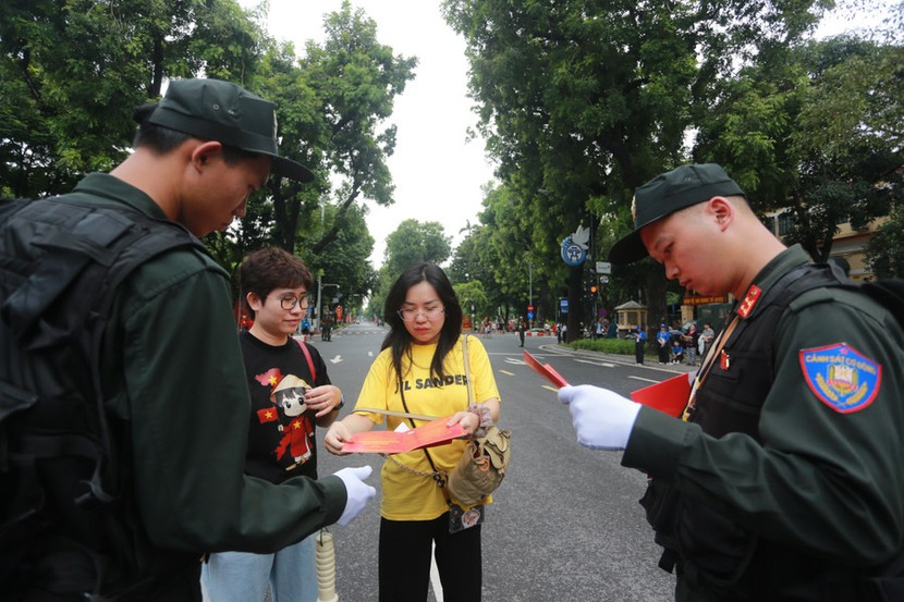 | Tận tình hướng dẫn người dân di chuyển đến khu vực thuận tiện để xem hoạt động diễn binh, diễu hành |