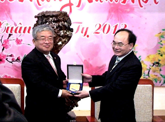 Thứ trưởng Bùi Quang Bền trao quà lưu niệm cho ông Kim Inn,