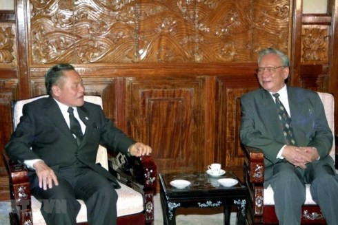 Chủ tịch nước Lê Đức Anh tiếp Thủ tướng Vương quốc Thái Lan Banharn Silpa-archa, chiều 1/10/1995, tại Hà Nội. (Ảnh: Minh Ðạo/TTXVN)