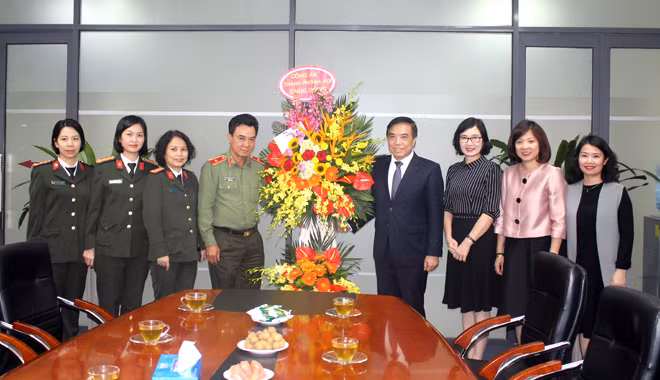 Thay mặt Đảng ủy, Ban Giám đốc cùng CBCS CATP Hà Nội, Thiếu tướng Nguyễn Anh Tuấn tặng hoa và trân trọng chúc mừng Ban Giám hiệu các trường Đại học Bách khoa; Đại học Ngoại thương; Đại học Xây dựng; Đại học Giao thông vận tải. Đồng chí Phó Giám đốc CATP khẳng định, nhiều năm qua các đơn vị đã phối hợp rất tốt với CATP trong nhiều lĩnh vực giữ gìn ANTT và đào tạo.
