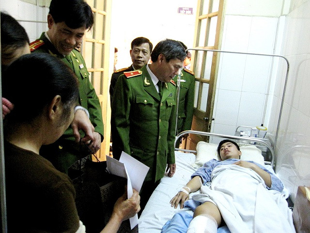 Thay mặt Đảng ủy, Ban Giám đốc CATP, Thiếu tướng Trần Thùy đã thăm hỏi, tặng quà và động viên đồng chí Hải sớm bình phục sức khỏe để trở về đơn vị, tiếp tục công tác cùng đồng đội. Biểu dương tinh thần dũng cảm của cán bộ chiến sỹ, đồng chí Phó Giám đốc cũng mong muốn Đại đội 15 phối hợp với Đồn công an Nam Đông Anh, huyện Đông Anh tiếp tục hoàn chỉnh hồ sơ, làm rõ vụ việc.