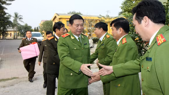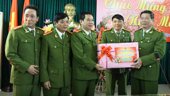 Thiếu tướng Đinh Văn Toản – Phó Giám đốc CATP Hà Nội chúc Tết và tặng quà cán bộ chiến sĩ Trại tạm giam số 2.