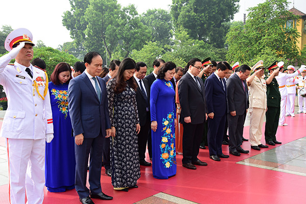 Trong không khí trang nghiêm, xúc động, các đại biểu bày tỏ lòng tri ân, biết ơn vô hạn tới những người con ưu tú của dân tộc đã anh dũng hy sinh vì độc lập, tự do của Tổ quốc, vì hạnh phúc của nhân dân và nguyện phấn đấu hết mình xây dựng Thủ đô ngày càng phát triển, văn minh.