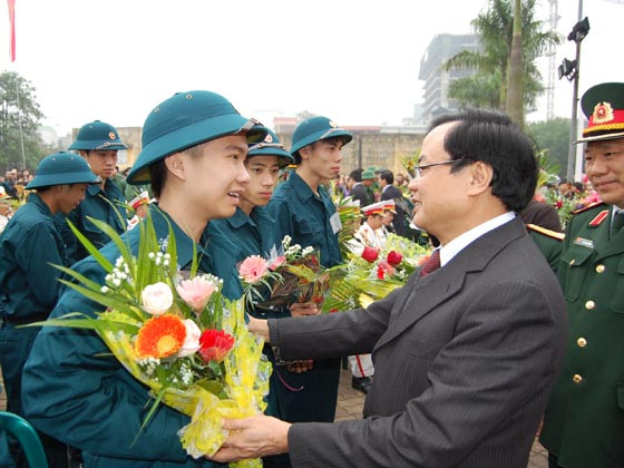 Sáng 25- 2, Bộ Tư lệnh Thủ đô phối hợp với CATP Hà Nội và các quận, huyện đã trang trọng tổ chức lễ giao nhận tân binh lên đường thực hiện nghĩa vụ quân sự. Đây là đợt giao nhận quân đầu tiên của năm 2013.