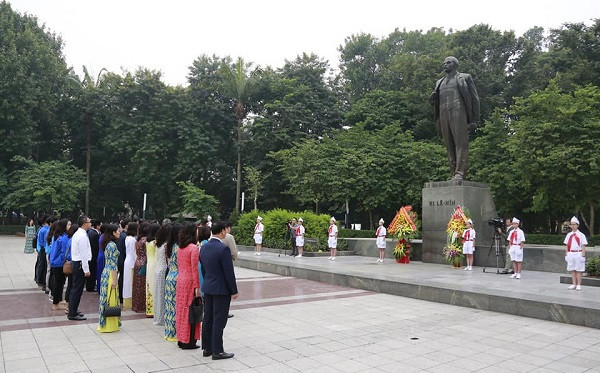 Cùng ngày, tuổi trẻ Thủ đô, các cơ quan, đoàn thể, đơn vị của thành phố Hà Nội cũng đến dâng hoa tưởng niệm tại Tượng đài V.I.Lê-nin.
